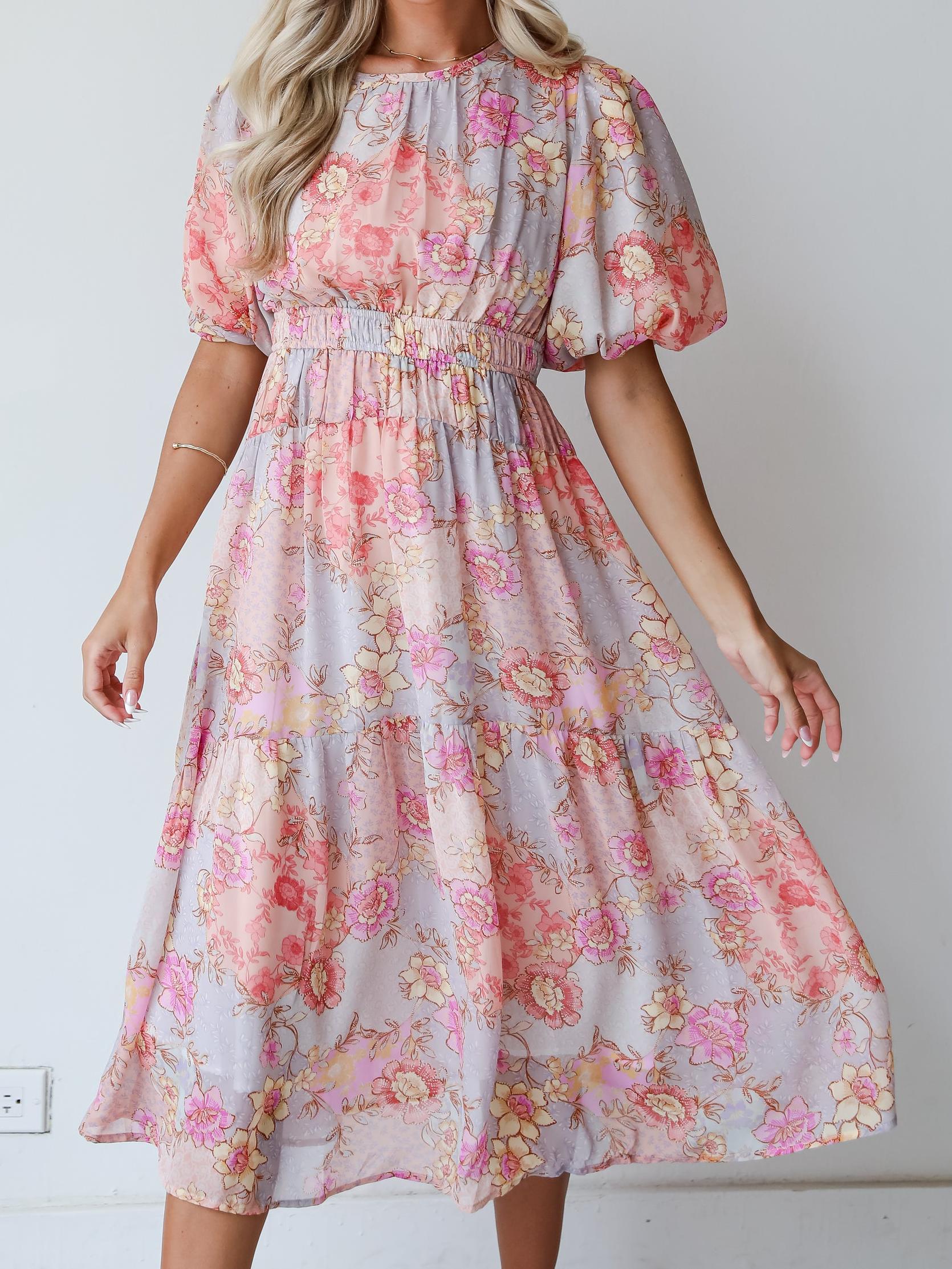 All About The Flowers Light Blue Midi Dress
