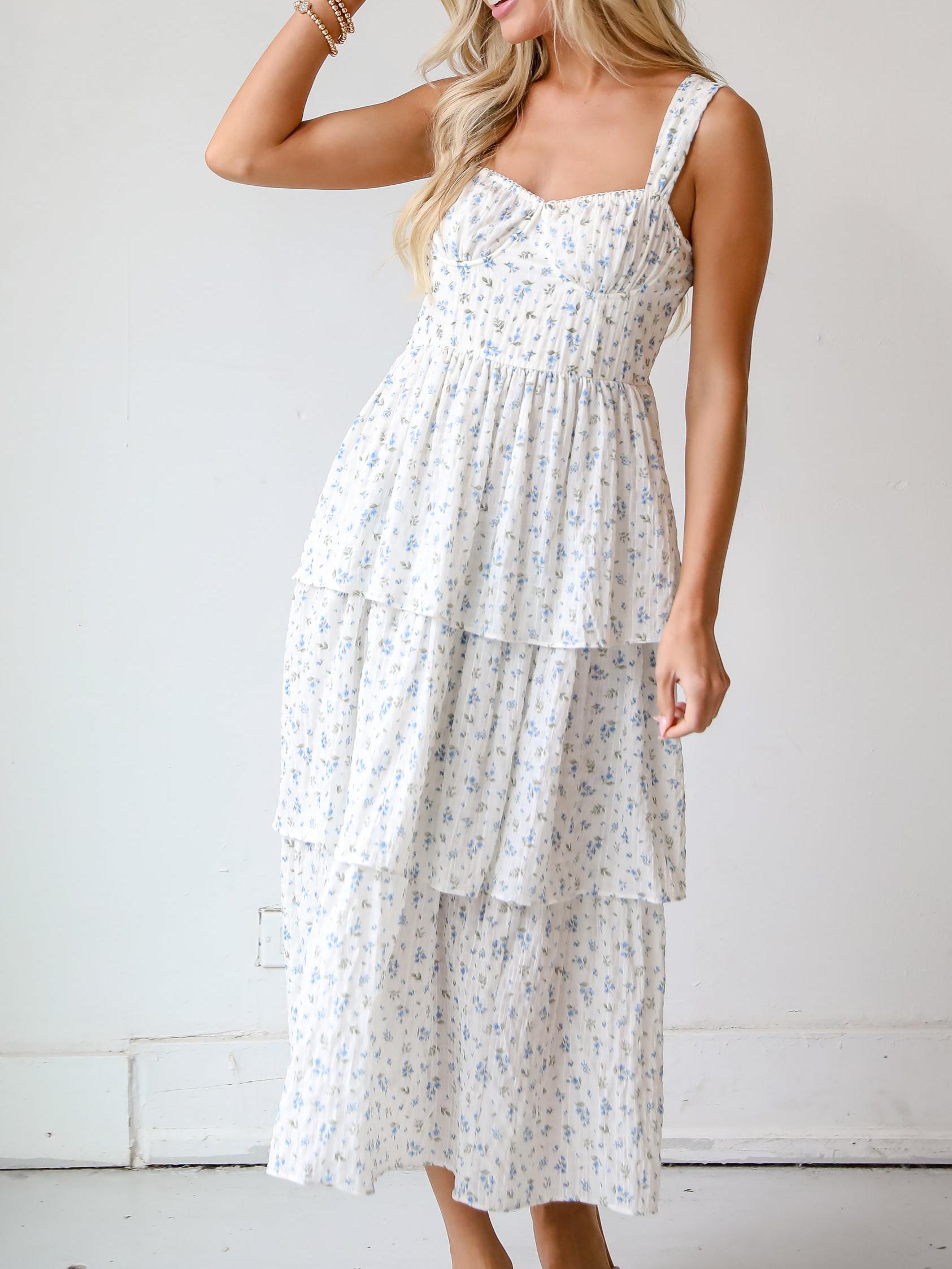 Caught Your Interest Ivory Floral Tiered Midi Dress 273