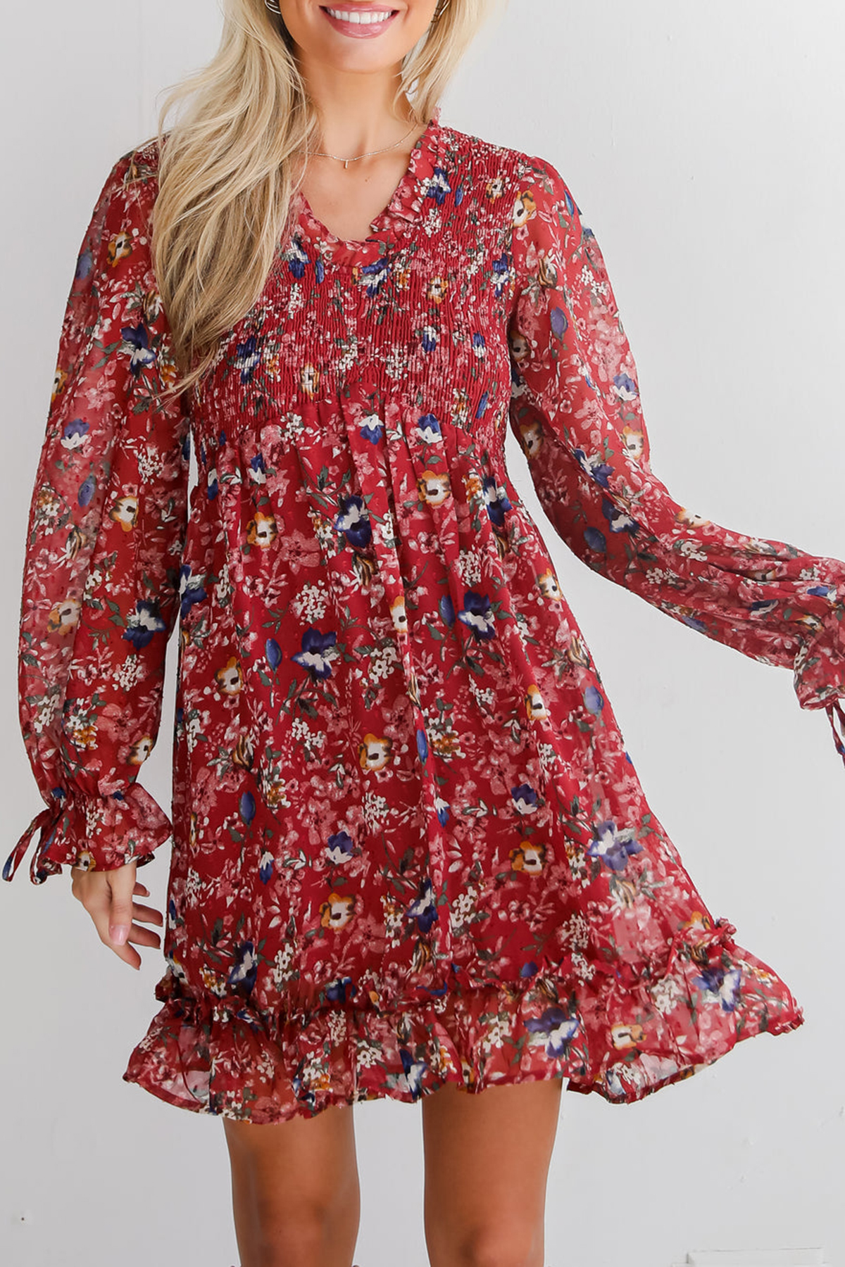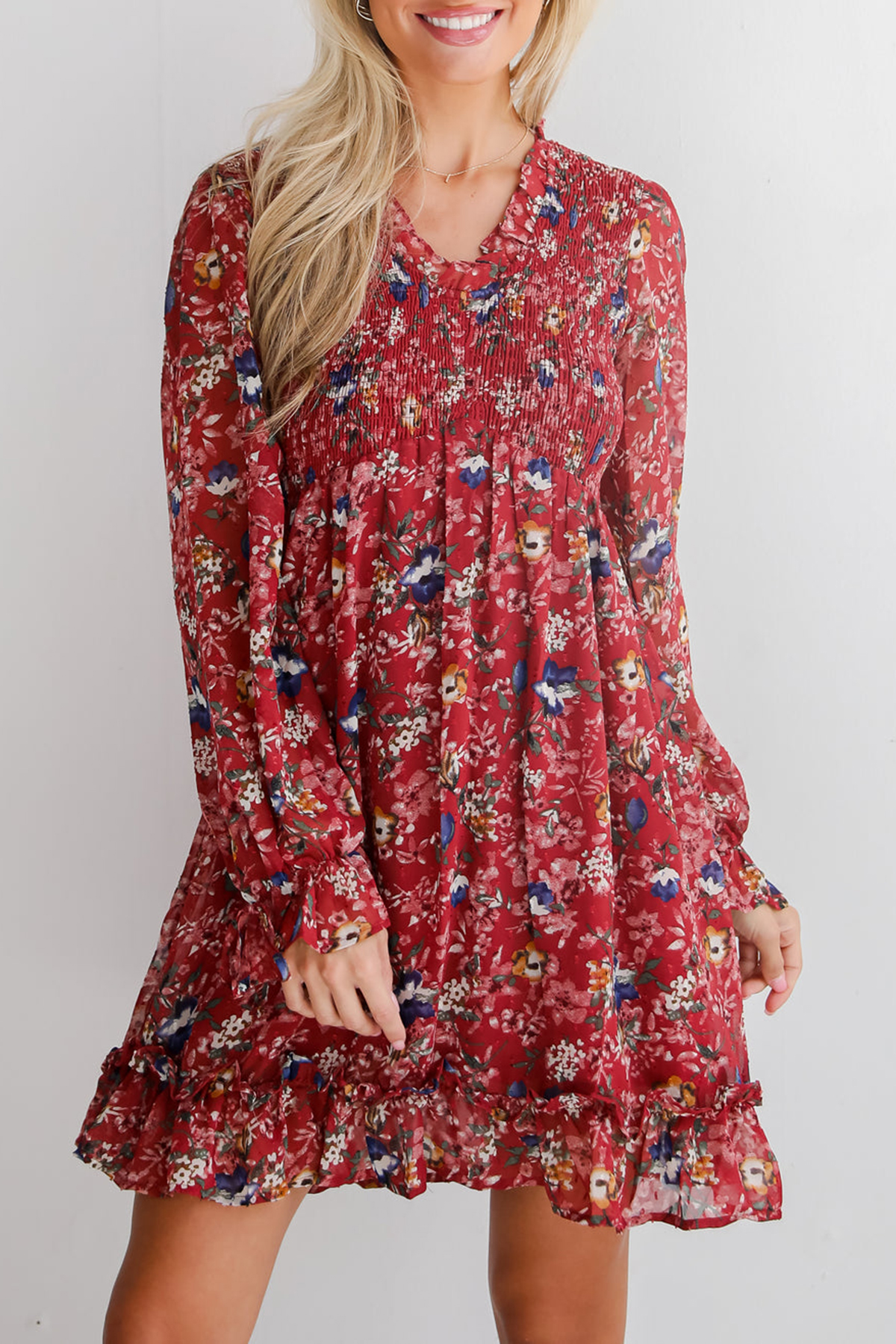 Darling Persuasion Burgundy Floral Mini Dress 233