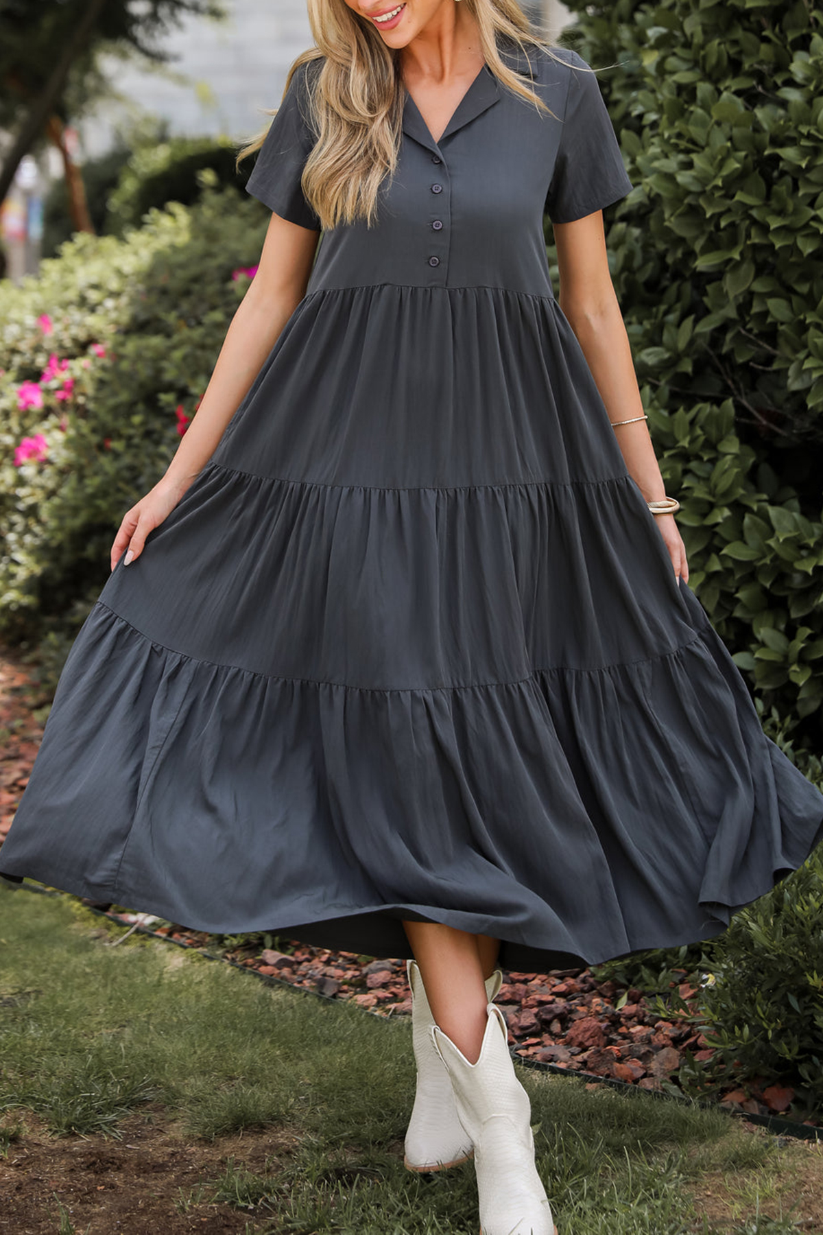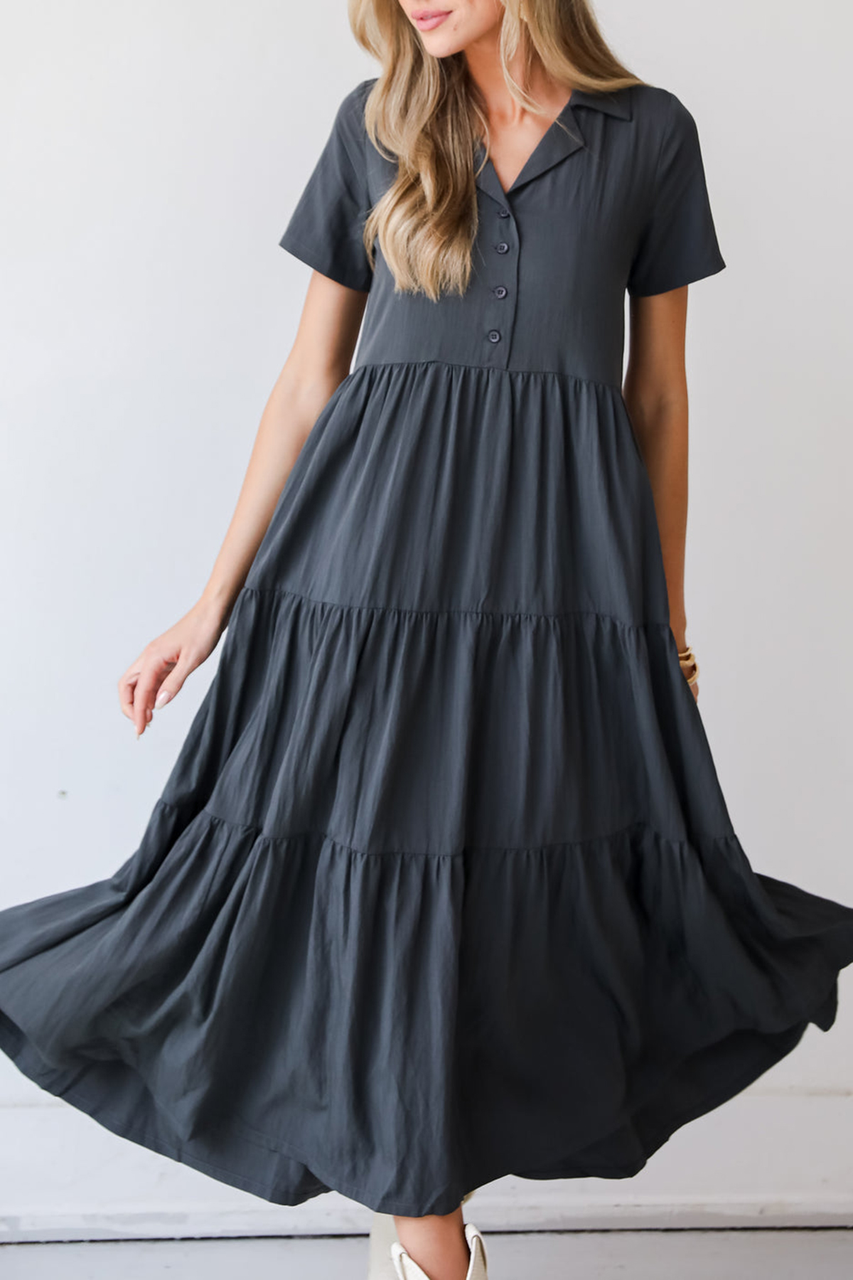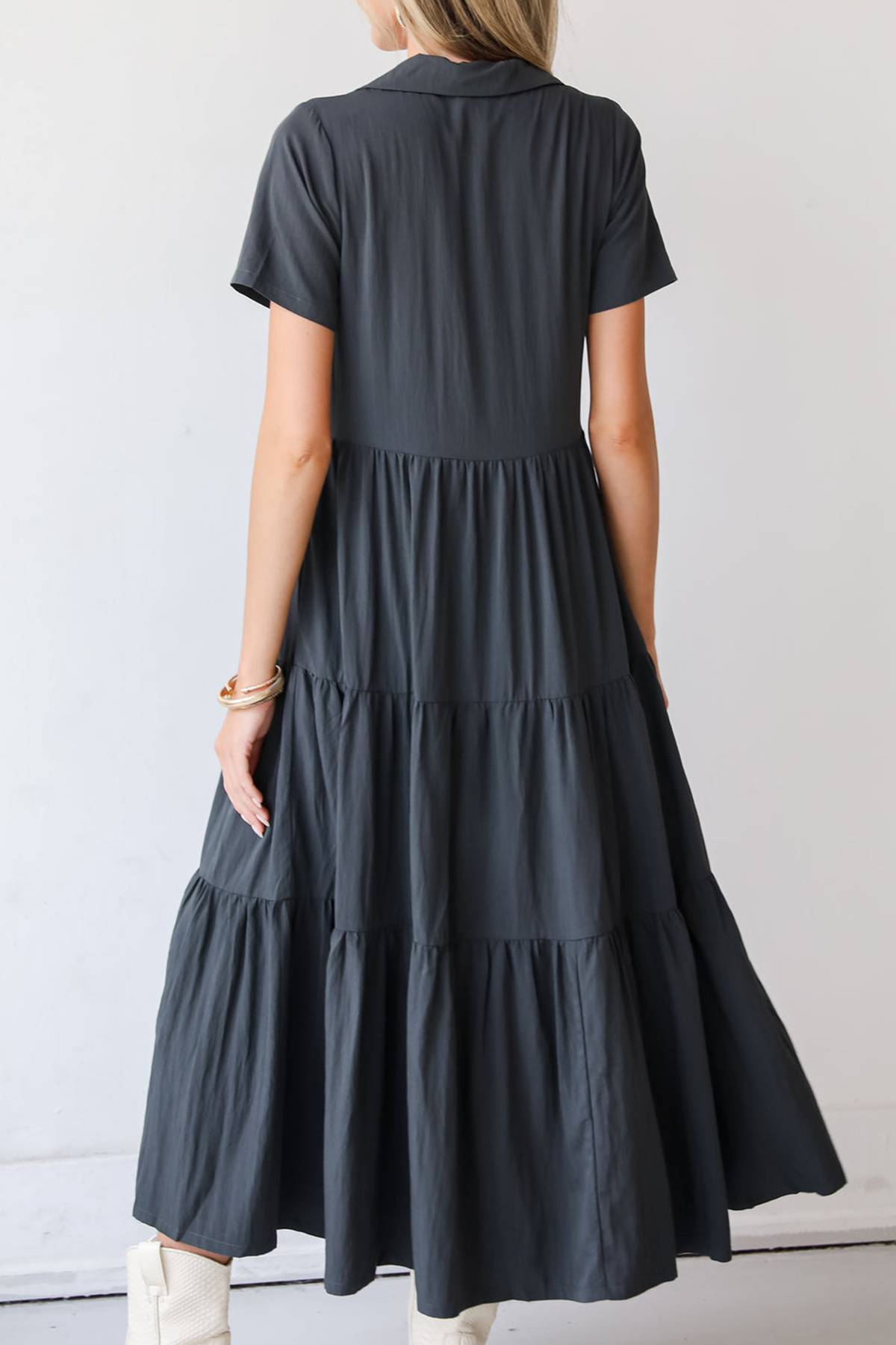 Stellar Sweetie Charcoal Tiered Maxi Dress