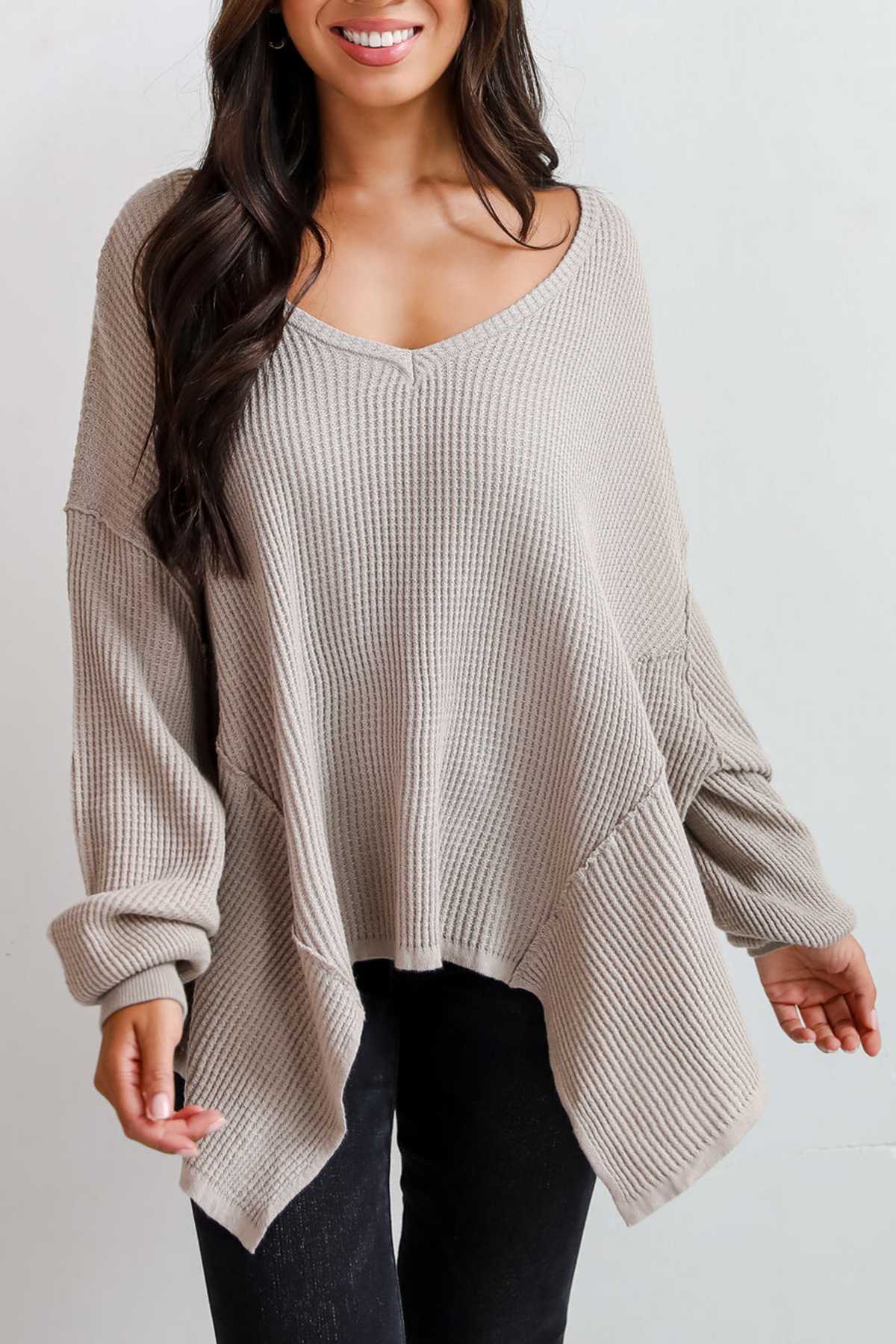 Sweetest Composure Taupe Oversized Waffle Knit Top
