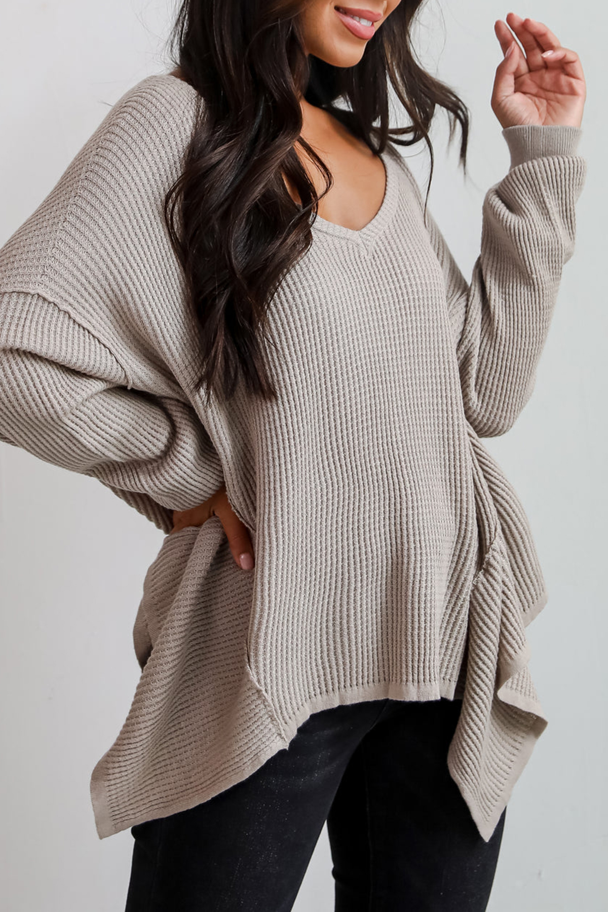 Sweetest Composure Taupe Oversized Waffle Knit Top 57