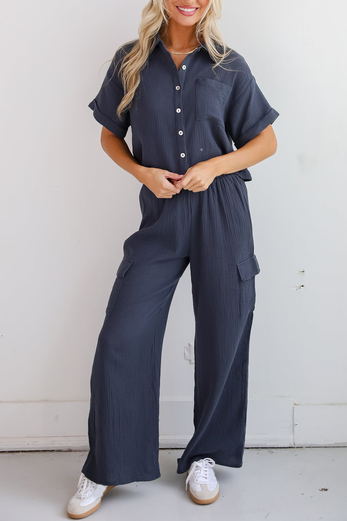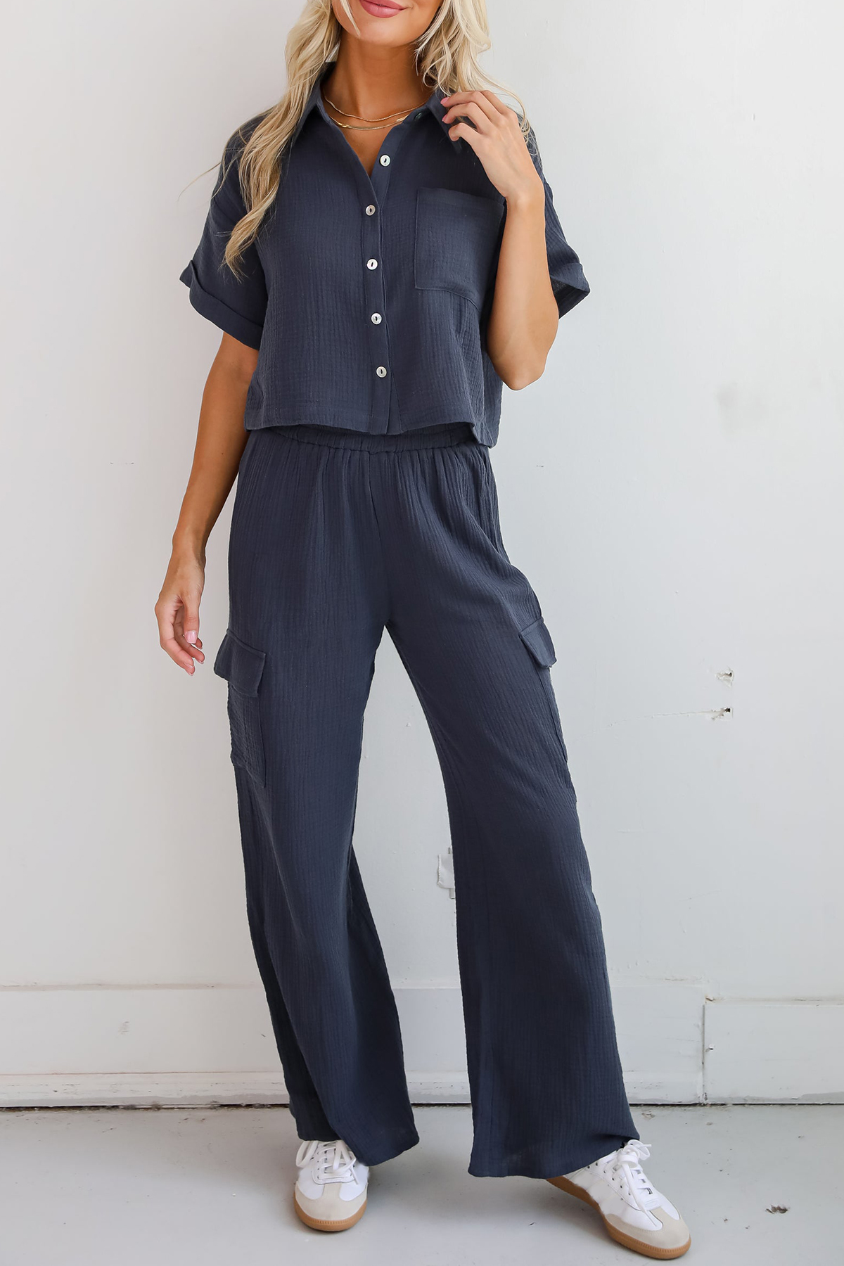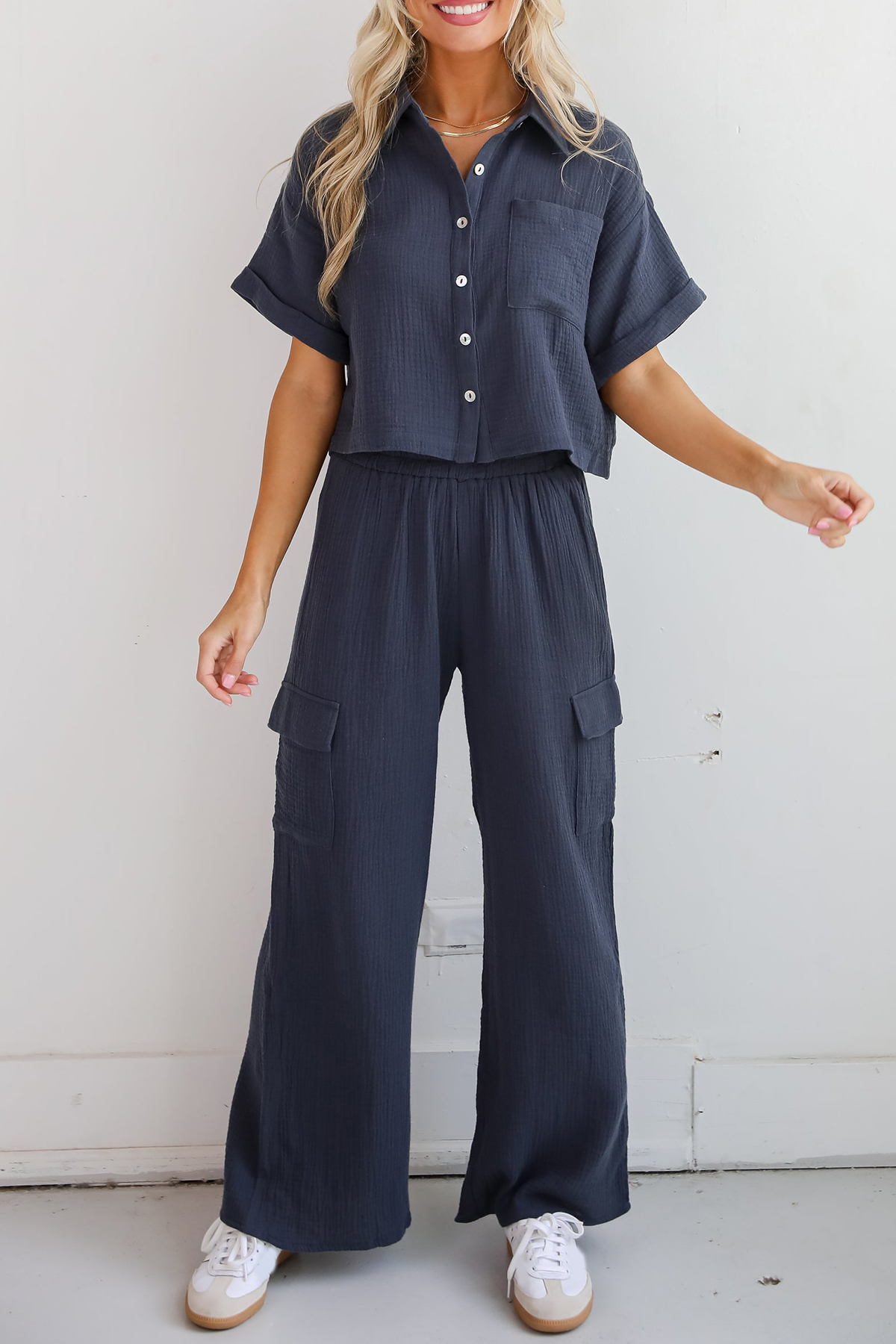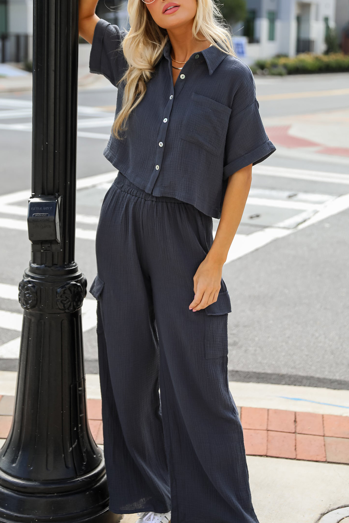 Too Perfect Charcoal Linen Cargo Pants